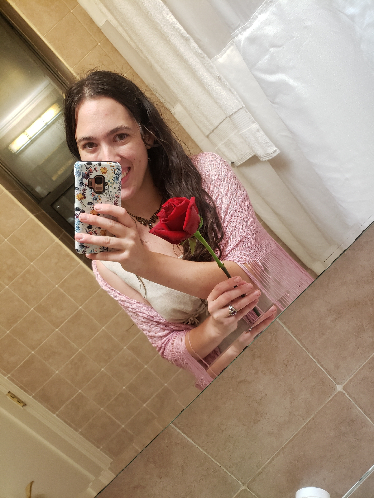 My friend noticed a crown of young Mexican lads around a bouquet of roses. They seemed nervous and excited. We watched them. Suddenly one of them broke away and hurried to us. He said to me, "Hi! I'm being challenged to hand this rose out. Will you accept it? Please?"